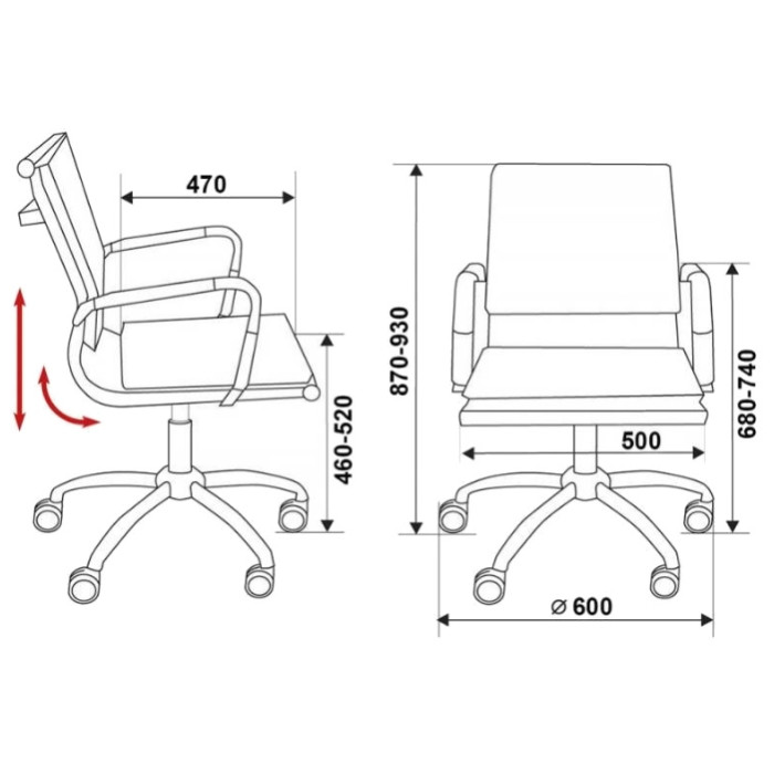 Высота кресла: от 87 до 93 см