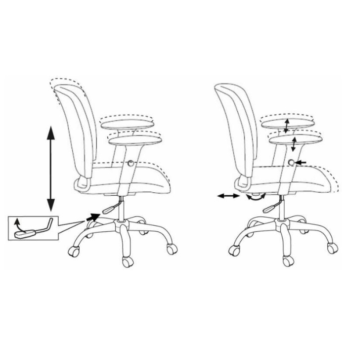 подлокотники, колеса (ролики), газлифт, поясничный упор