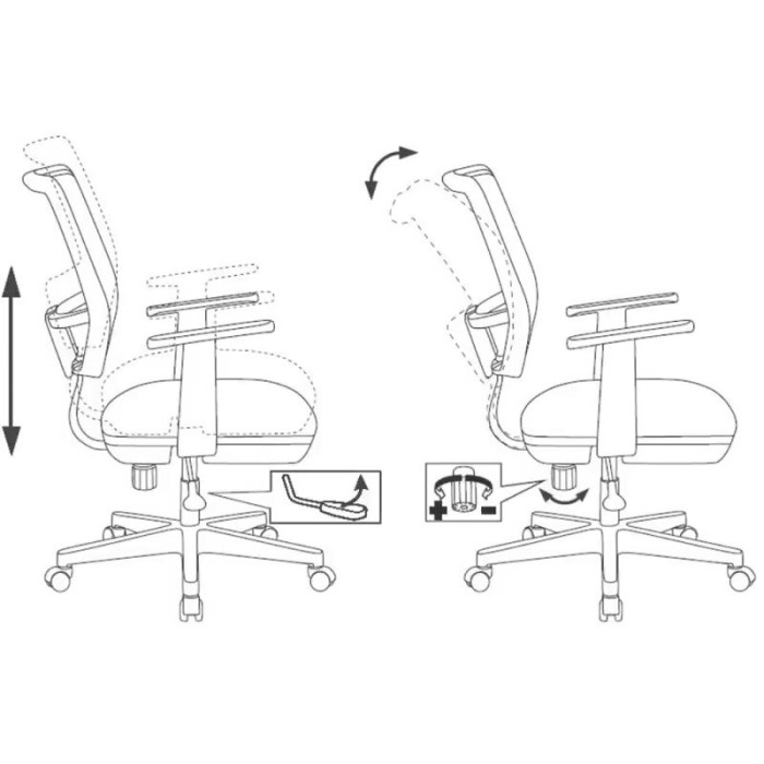 Эргономичная спинка (сетка). Подлокотники пластиковые. Соответствует стандарту BIFMA