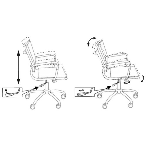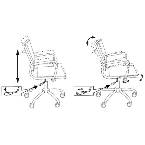расположение центра тяжести при качании со смещенной осью; соотношение угла отклонения спинки и подъема сиденья 1:1 (не изменяется)