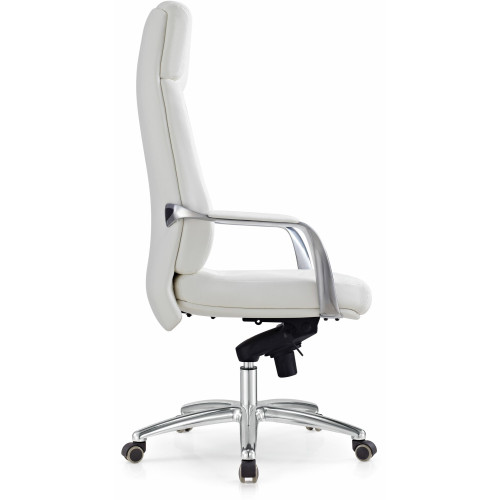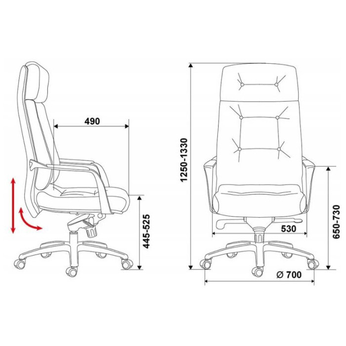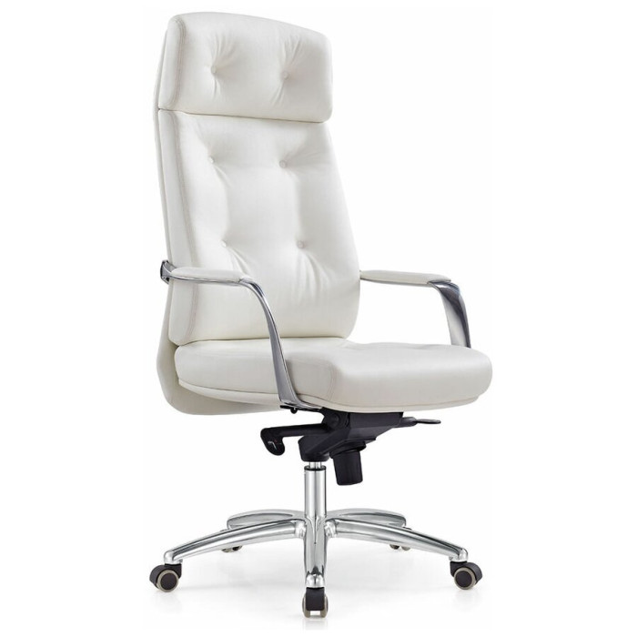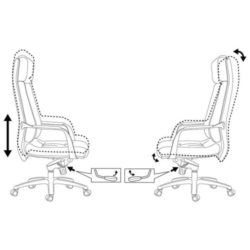 Обивка Натуральная кожа высокого качества (лицевая часть, подлокотники), цвет коричневый Спинка Высокая спинка с подголовником Подлокотники Подлокотники металлические хромированные с накладками из натуральной кожи Крестовина Металлическая крестовина (полированный алюминий) Ролики Стандарт BIFMA Наполнитель Эластичный высокоупругий поролон Ограничение по весу 150 кг Механизм Механизм со смещенной осью качания с фиксацией в 4-х положениях Гарантия 2 года
