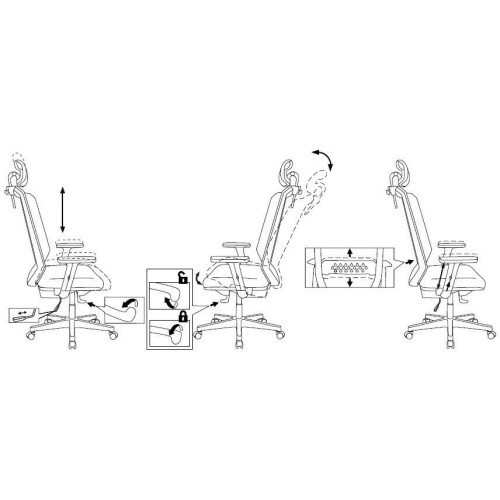 механизм качания, спинка из сетки, фиксация спинки в любом положении