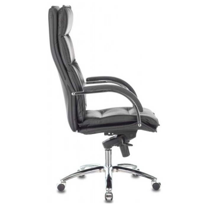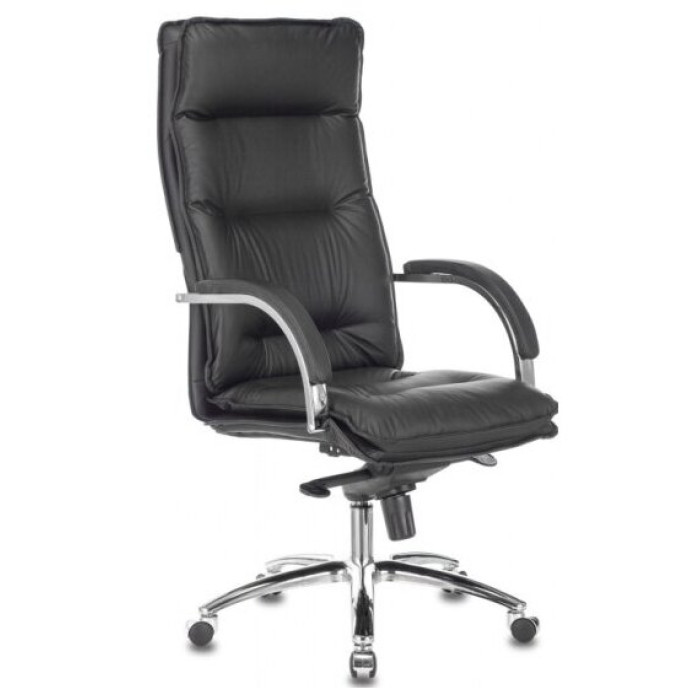 механизм со смещенной осью качания с регулировкой под вес и возможностью фиксации в нескольких положениях, хромированные подлокотники с мягкими кожаными накладками, функция «Антишок», материал обивки: натуральная кожа/искусственная кожа, диаметр колес: 50 мм