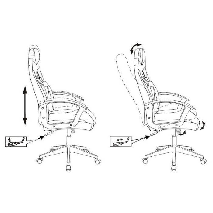 высоты сиденья, наклона спинки, высоты поясничного упора, глубины сиденья, жесткости качания