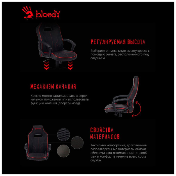 Игровое кресло Bloody GC-120 с передовой эргономикой для продолжительных игровых сессий. Дизайн и конструкция кресел обеспечивают максимальный комфорт во время игры, снижают нагрузку на спину и способствуют поддержке осанки.