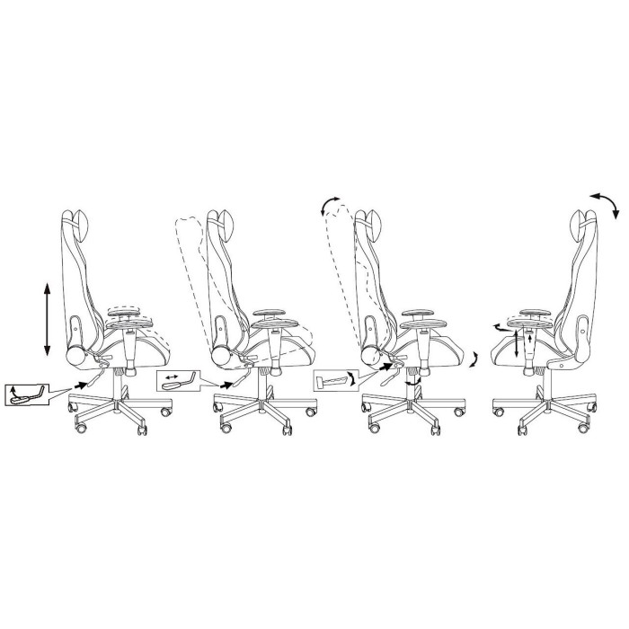 назначение: игровое, конструктивные особенности: подголовник, подлокотники, колеса (ролики), газлифт, поясничный упор, функциональные особенности: фиксация механизма качания, прорезиненные колесики, мягкое сиденье, механизм качания, материал крестовины: металл, максимальная нагрузка: 150 кг, регулировка: высоты сиденья, наклона спинки, высоты подлокотников