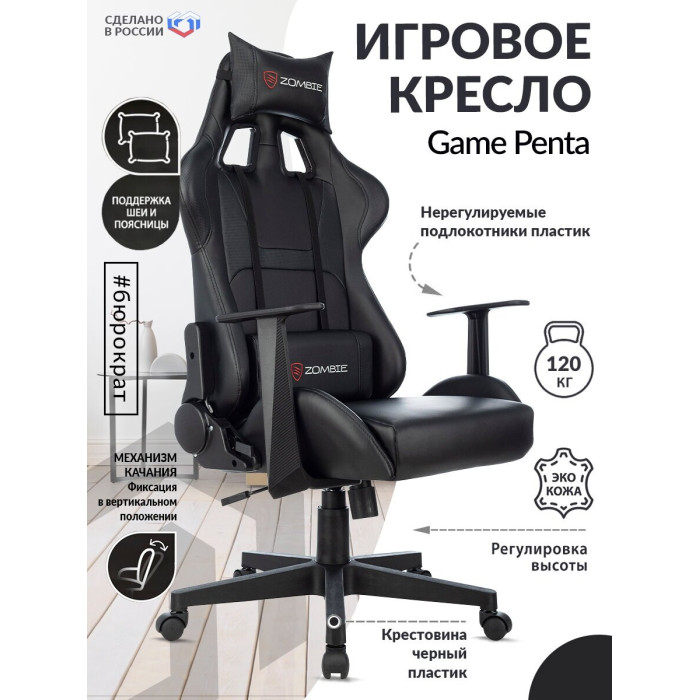 Кресло игровое ZOMBIE GAME PENTA B - это стильное и удобное кресло, которое подойдет для компьютерных игр, работы в офисе и дома. Оно выполнено в черном цвете из экокожи, что придает ему элегантный вид.