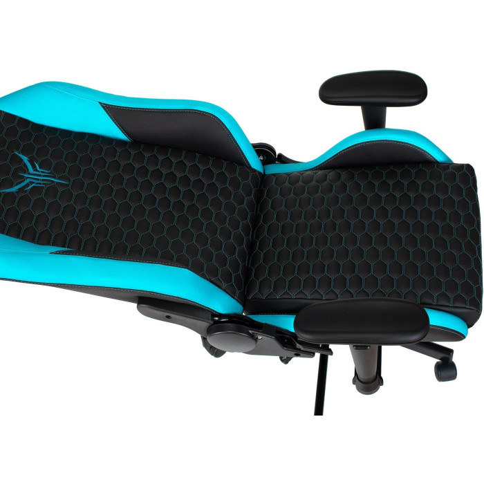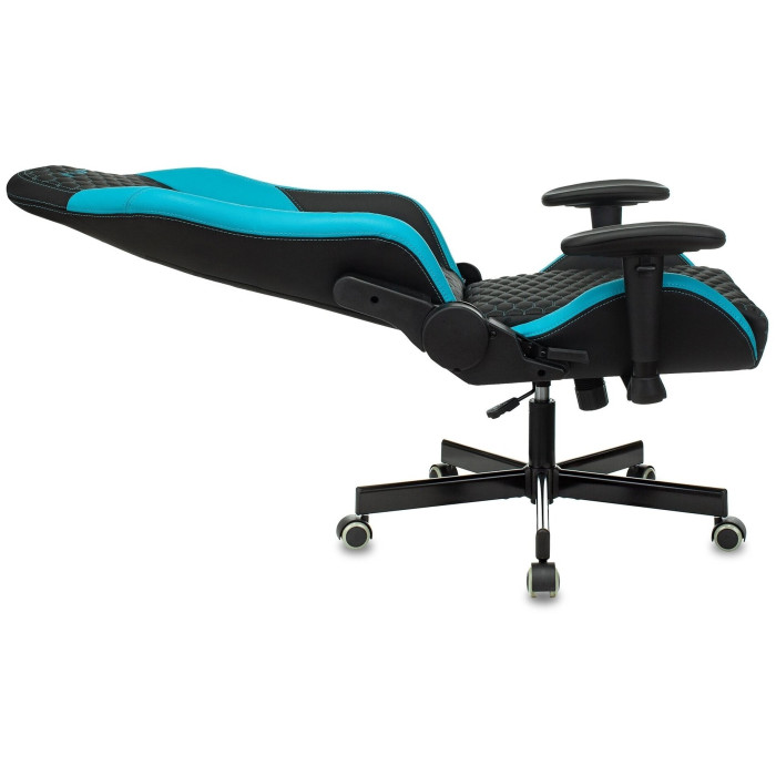 механизм качания с регулировкой под вес и возможностью фиксации в вертикальном положении, угол наклона спинки: от 90 до 150°, пластиковые 2D подлокотники, материал обивки: экокожа, колеса для паркета и ламината, диаметр колес: 50 мм