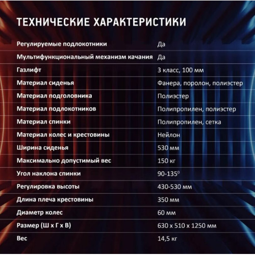 На колесиках, Регулировка по высоте, Регулируемая спинка, С подголовником, С подлокотниками