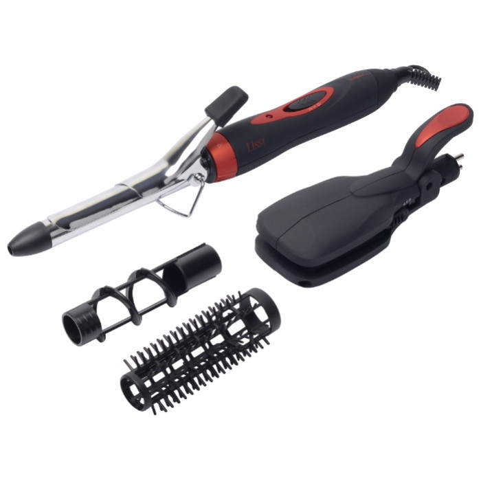 насадка-щетка, насадка-щипцы для завивки, насадка-гофре, насадка для выпрямления волос, насадка для спиральной укладки
