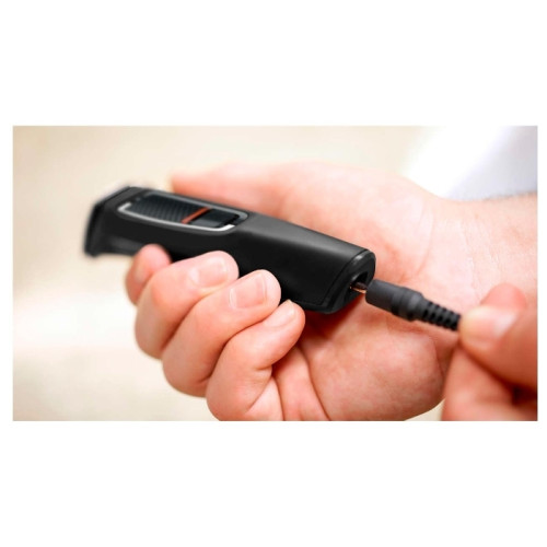 2 гребня для щетины; регулируемый гребень для бороды; 3 гребня для волос; триммер для стрижки в носу и ушах; триммер для создания контура; щеточка для чистки