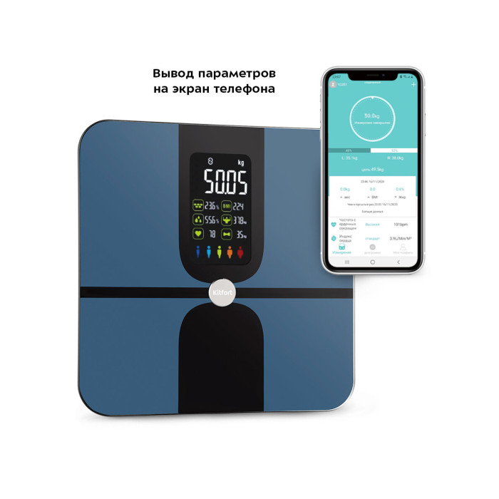 определение доли воды, определение доли жировой ткани, определение доли костной ткани, определение доли мышечной ткани, расчет ИМТ (BMI)