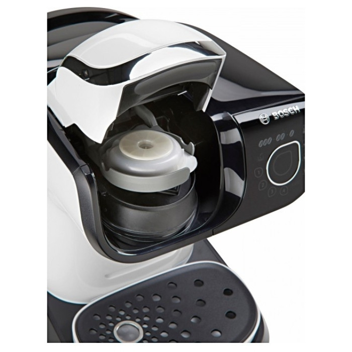 прибор для приготовления порционных горячих напитков(различных видов кофе, чая и горячего шоколада) с использованием капсул (Т-дисков); интеллектуальная система считывания штрих-кода (распознавание типа напитка и технологии для его приготовления); съемная регулируемая по высоте подставка для чашек; длина шнура 1м