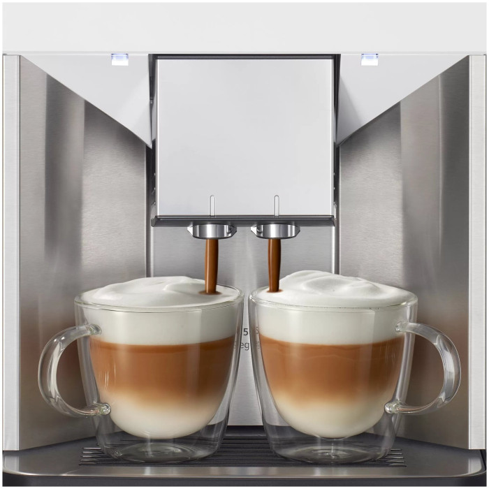 Кофемашина Siemens EQ.500 integral оснащена автоматическим капучинатором. За счёт этого вы в считанные минуты приготовите не только крепкий эспрессо, но и нежный латте макиато. Просто прикоснитесь к соответствующей кнопке на сенсорной панели управления. Благодаря системе экстракции и заваривания iAroma вкус бодрящего напитка получается максимально насыщенным. Невероятный аромат и двойная крепость без лишней горечи в каждой чашке! Если вы не любите пить кофе в одиночестве, то приготовьте две чашки подряд и угостите кого-нибудь из домочадцев или коллег. Быстро не остывать напитку поможет предварительный нагрев кружек на специальной подставке. Дозатор регулируется по высоте, так что наполнять можно и стаканы.