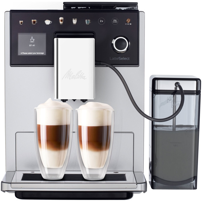 тип устройства: кофемашина, тип: автоматическая, тип используемого кофе: зерновой, тип напитка: капучино, латте макиато, эспрессо, американо, тип капсул: молотый, зерновой, давление помпы: 15 бар, встроенная кофемолка, регулировка степени помола, дополнительные функции: автоотключение при неиспользовании, подогрев чашек, быстрый пар, подача горячей воды, одновременное приготовление двух чашек, предварительное смачивание