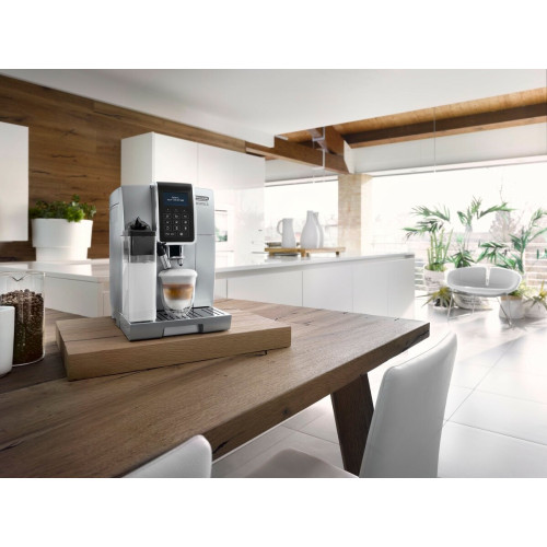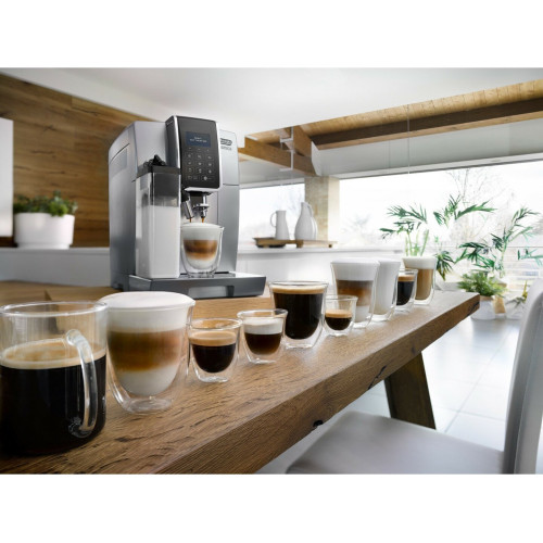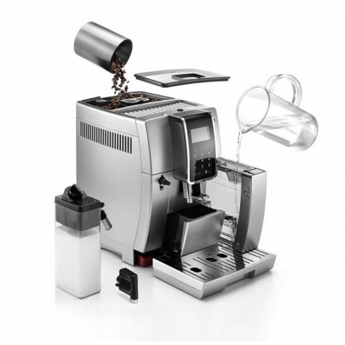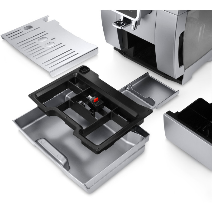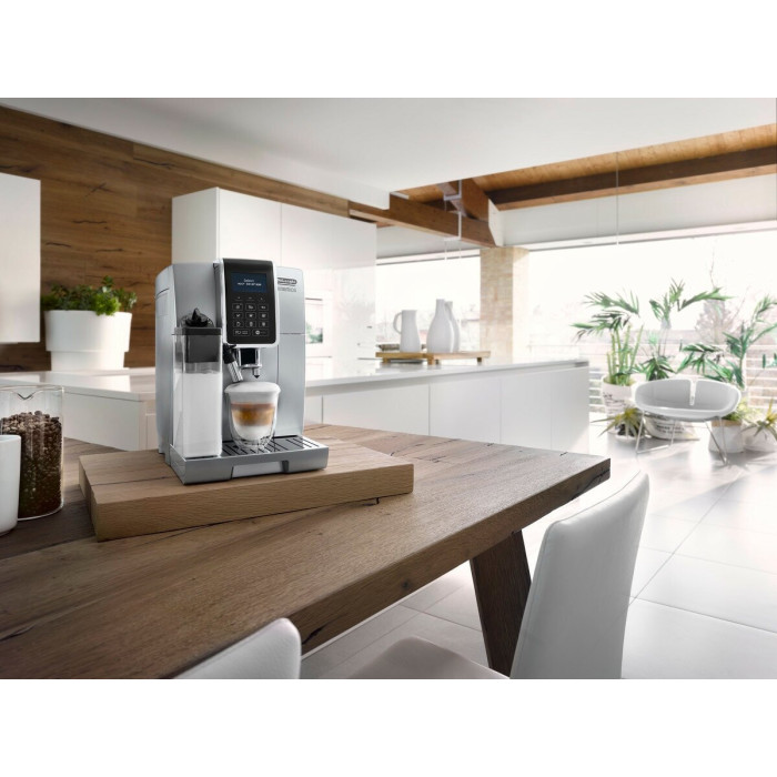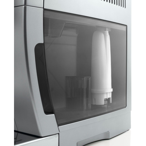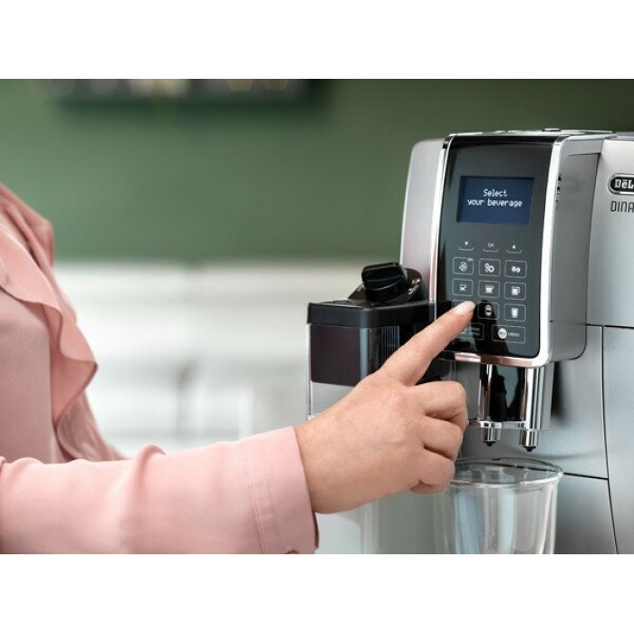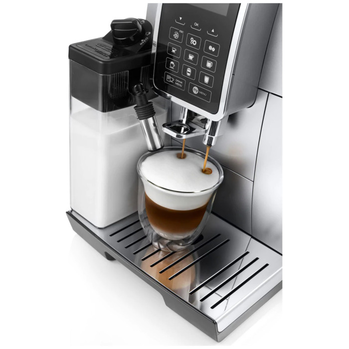 Автоматическая кофемашина Dinamica ECAM 350.75 станет вашим персональным помощником по приготовлению свежего кофе. Ваши любимые ароматные напитки - эспрессо, капучино, латте и горячее молоко - будут готовы с помощью всего одного нажатия на кнопку. Преимуществом данной кофемашины является наличие отдельной клавиши "Лонг" на панели управления. Технология LatteCrema System создаст воздушную и пышную пенку для вашего кофе. А функция "My menu" предусматривает приготовление кофе по выбранным вами параметрам. Вы можете отрегулировать необходимые крепость напитка, количество воды и молока, а так же грубость помола. На большом LCD дисплее вы увидите всю необходимую информацию о кофейном напитке.