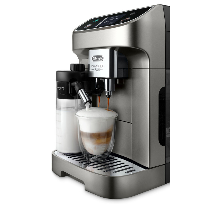 Мощность, Вт1450Давление15 БарТип используемого кофезерновой / молотыйТип капучинатораавтоматическийМолочная системаLatteCrema HotВозможность готовить одновременно две чашки эспрессоДаОбъем резервуара для воды, л1,9Объем бункера для зерен, г250Вместимость молочного контейнера для молока LatteCrema Hot, л0,5Количество индивидуальных профилей4Регулировка температурных режимовДаДисплейцветной TFT 3,5 "Тип управлениясенсорный дисплейКофемолкавстроеннаяМатериал конических жернововметаллКоличество степеней помола13Предустановленные напитки18Предустановленные напиткиЭспрессо, кофе, лонг, доппио +, американо, горячие молочные напитки, капучино, латте макиато, капучино +, капучино микс, горячее молоко, кофе латте, флэт уайт, кортадо, эспрессо макиатоХолодные кофейные напиткиХолодный американо/холодный кофеГорячие кофейные напиткиЭспрессо / Кофе / Лонг / Доппио+ / АмериканоГорячие молочные напиткиКапучино / Латте Маккиато / Капучино+ / Смесь капучино /Горячее молоко / Кофе латте / Флэт Уайт / Кортадо / Эспрессо МаккиатоФункция приготовления горячей воды и чаяестьФункция АроматизацииестьРегулируемый диспенсерестьМаксимальная высота чашки14 смРегулировка высоты узла подачи молокаестьРегулировка плотности молочной пеныестьУправление с телефонаНетАвтоотключениеПрограмируемое: 15,30,60,180минИндикатор включенияДаСистема самоочисткиДаУстановка жесткости водыДаРегулировка плотности пеныДаРегулировка порции водыДаИндикация очистки от накипиДаРегулировка крепости кофеДаПодогрев для чашекНетИндикатор отсутствия кофеДаПрограммирование напитковДаВозможность использования фильтра для водыДаКомплектацияКофемашина; Съемный поддон для капель; Узел подачи горячей воды; Кувшин для молока (latte crema hot); Ложка-дозатор для молотого кофе; Индикаторная полоска “Total Hardness Test”Материал корпусапластик / металлЦветТитанВес и габариты прибора (ВхШхГ)9,8кг; 360 х 240 х 440 ммСтрана производстваРумыния