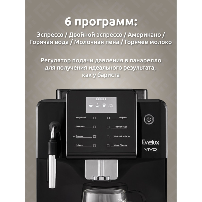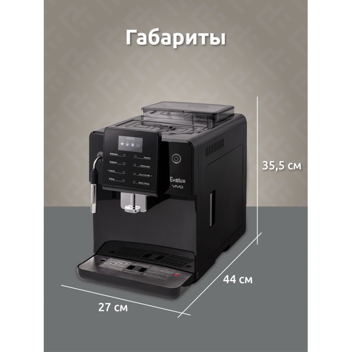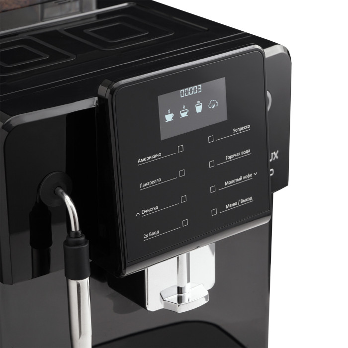 дисплей, индикатор уровня воды, индикация отсутствия кофе, индикация работы, контейнер для отходов, съемный лоток для сбора капель