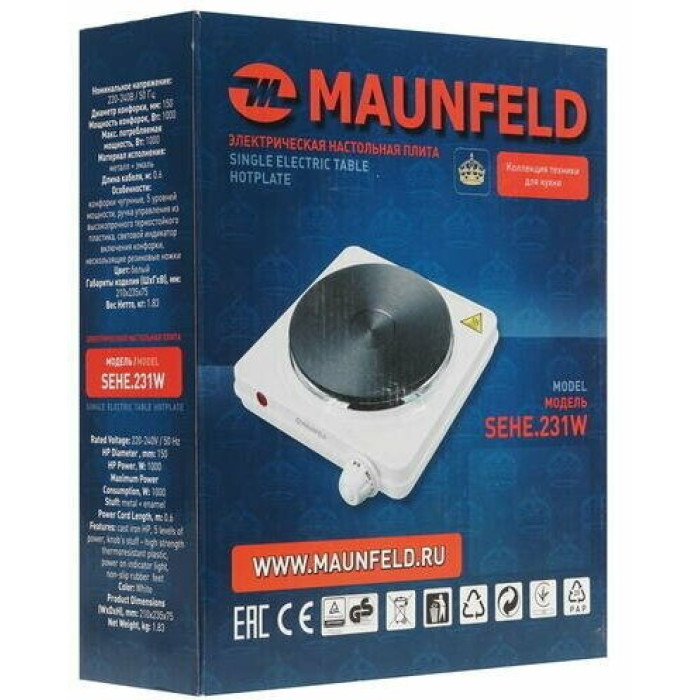 тип: электрическая, тип духовки: нет, тип варочной панели: электрическая, материал рабочей поверхности: эмалированная сталь, ширина: 21 см, глубина: 23.50 см, настольная, количество конфорок: 1