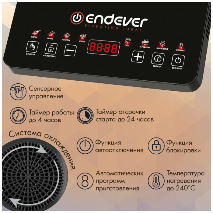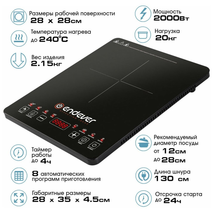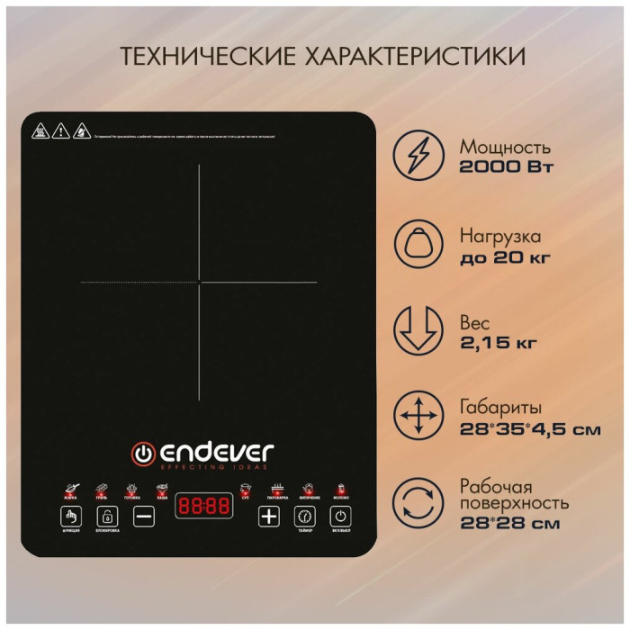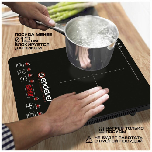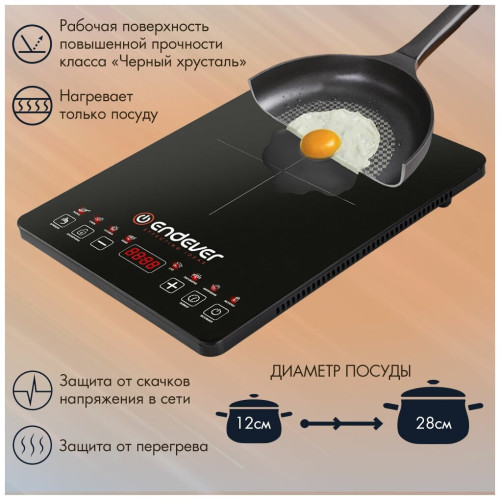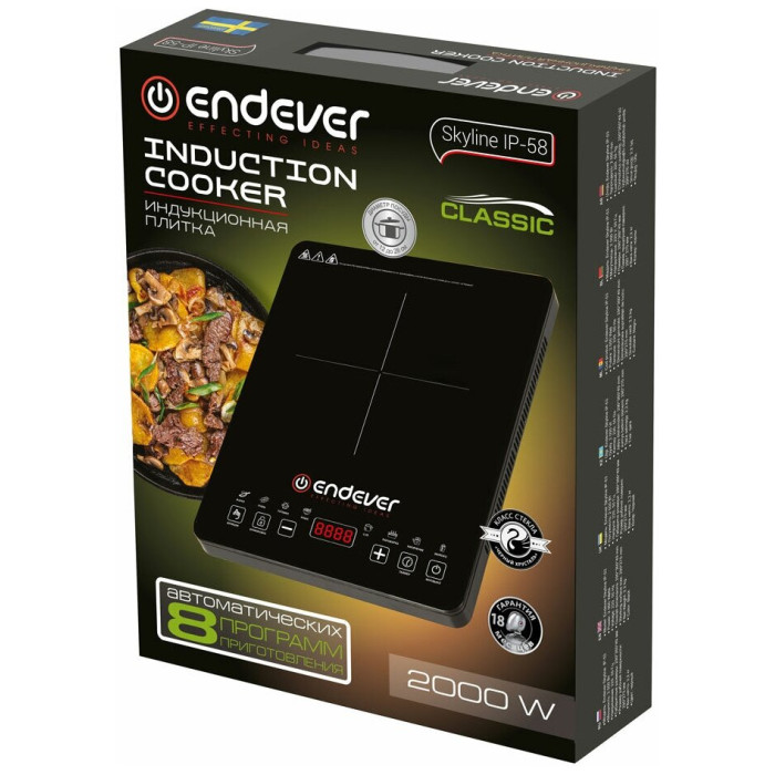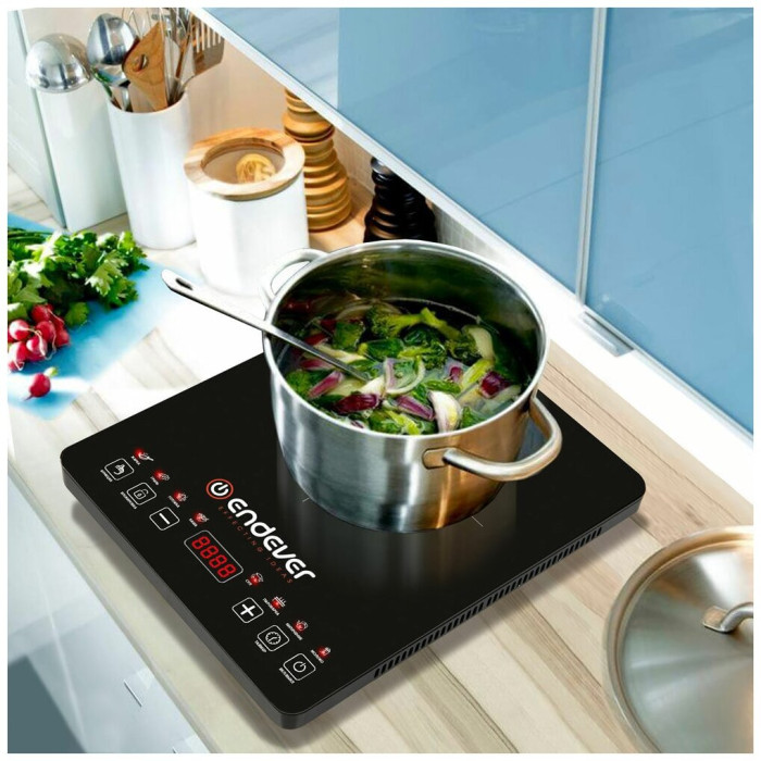 Индукционная плита ENDEVER Skyline IP-58 предназначена для ценителей минималистичного и эргономичного дизайна на Вашей кухне, чтобы ничего не нарушало пространство и четко вписывалось в интерьер Вашей кухни. За минимализм отвечают небольшие габаритные размеры варочной поверхности 28*35 см и толщина плиты 4,5 см. А за эргономику отвечает весьма строгий, лаконичный внешний вид в черном исполнении. Эта модель плиты будет радовать Вас своим внешним видом долгие года.