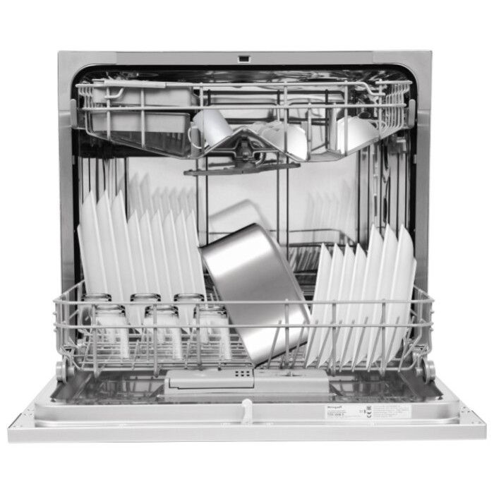 компактная, отдельно стоящая, ширина 55 см вместимость: 8 комплектов 7 программ мойки расход воды 8 л конденсационная сушка класса A таймер отсрочки запуска класс энергопотребления A+ уровень шума при работе 49 дБ