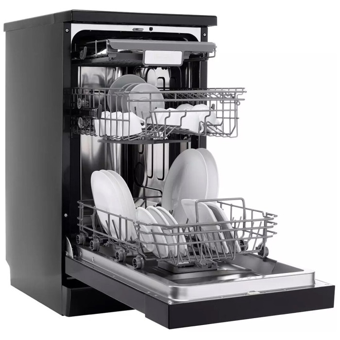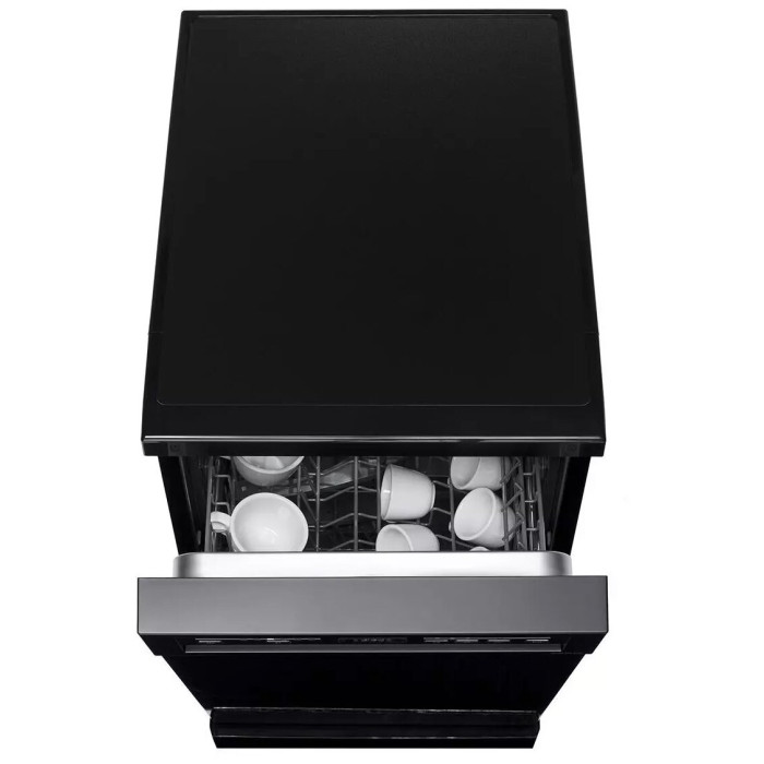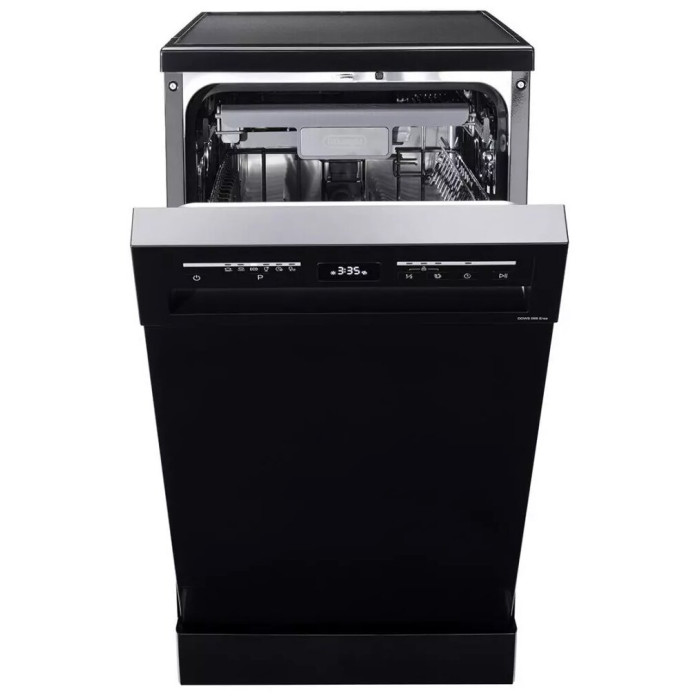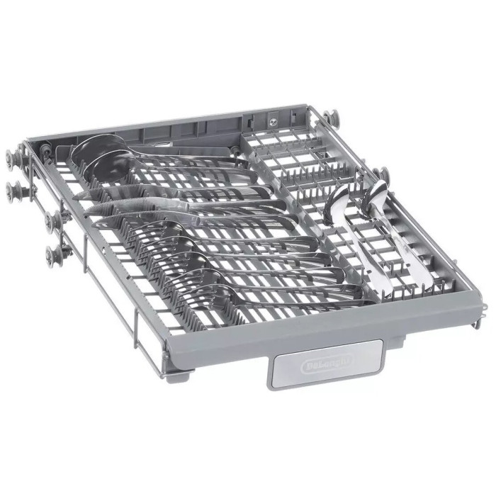 Посудомоечная машина DeLonghi DDWS09S Erea относится к узким отдельностоящим — ширина всего 45 см. Максимальная вместимость составляет 10 комплектов. Устройство собрано в Италии. Секрет качественной мойки не только марка моющего средства или материал корзины, но и правильная раскладка посуды в корзине. Тогда будет происходить правильное распределение потоков воды и расход моющего средства, также это влияет на продолжительность цикла. В данной модели предусмотрена специальная программа для кастрюль. Для столовых приборов предназначен отдельный лоток, имеющий мелкоячеистые стенки — даже маленькая вилка или десертный нож не упадут внутрь камеры. В ней предусмотрен таймер с отрочкой старта от 1 до 12 часов.