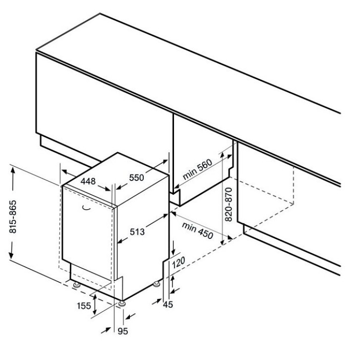 встраиваемая часть (В*Ш*Г), мм: 815-865*448*550; ниша для встраивания (В*Ш*Г), мм: 820-870*450*560