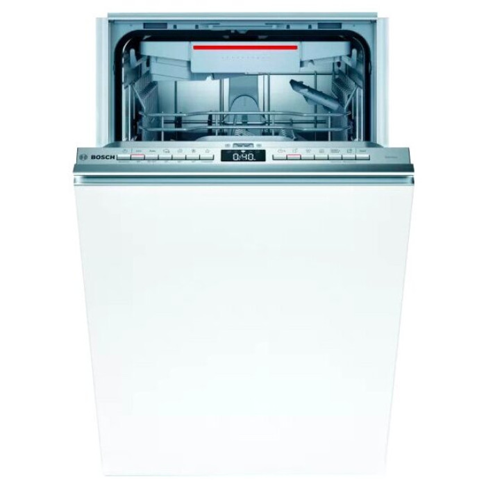 тип установки: встраиваемая полностью, тип: узкая, ширина: 44.80 см, высота: 81.50 см, глубина: 55 см, безопасность: защита от протечек, индикация работы: время до завершения мойки на полу, программы: автоматическая, быстрая, интенсивная, предварительное ополаскивание/замачивание, экономичная, тип сушки: интенсивная, вместимость: 10 комплектов, управление: электронное, особенности: внутренняя поверхность из нержавеющей стали, дисплей, регулируемая по высоте корзина для посуды, таймер отсрочки