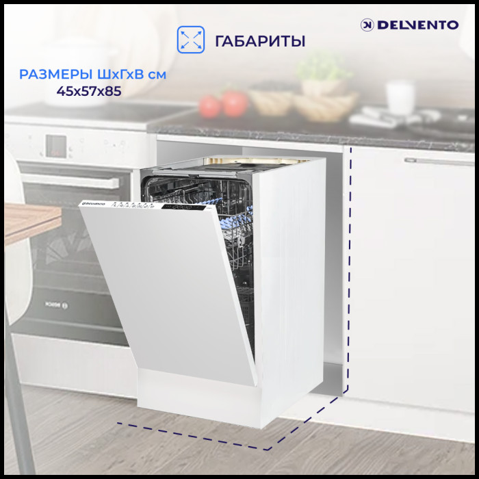 тип установки: встраиваемая полностью, тип: компактная, ширина: 45 см, высота: 82 см, глубина: 57 см, безопасность: защита от протечек, программы: быстрая, деликатная, интенсивная, режим ополаскивания, режим половинной загрузки, стандартная, тип сушки: конденсационная, вместимость: 10 комплектов, особенности: внутренняя поверхность из нержавеющей стали, дисплей