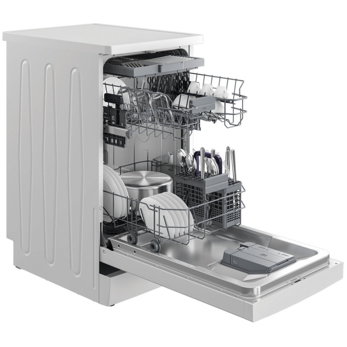Белая посудомоечная машина шириной 45 см с тихим и долговечным инверторным мотором ProSmart, системой защиты от протечек и тремя уровнями для загрузки посуды. Машина вмещает до 11 комплектов посуды, имеет 6 режимов для мытья и автоматическую дозировку моющего средства AutoDose, которая позволит заправлять посудомоечную машину всего лишь раз в месяц в зависимости от выбранного режима. Технология интенсивного мытья поможет тщательно отмыть кастрюли и сковородки.
