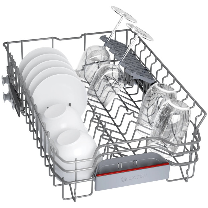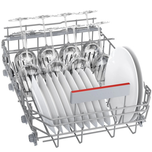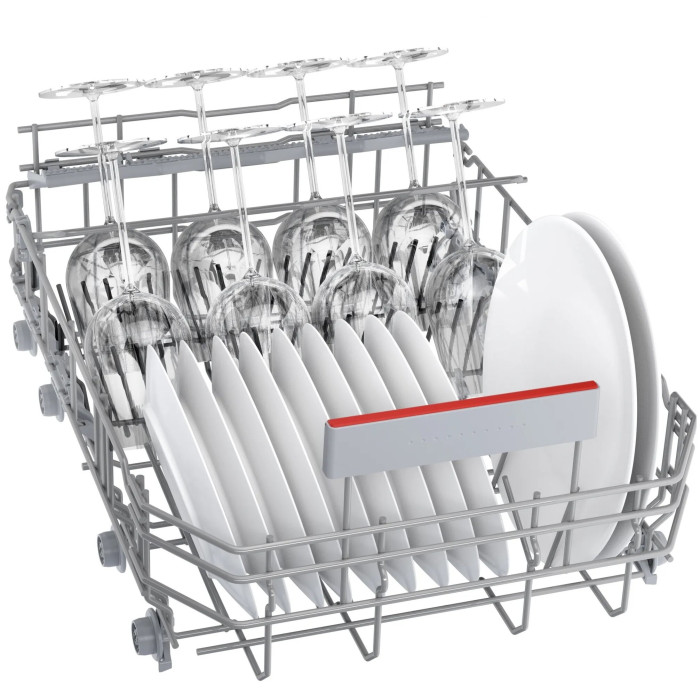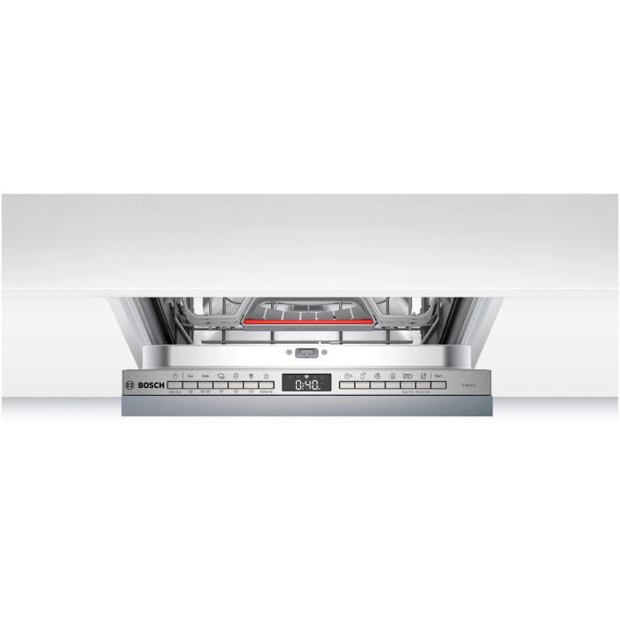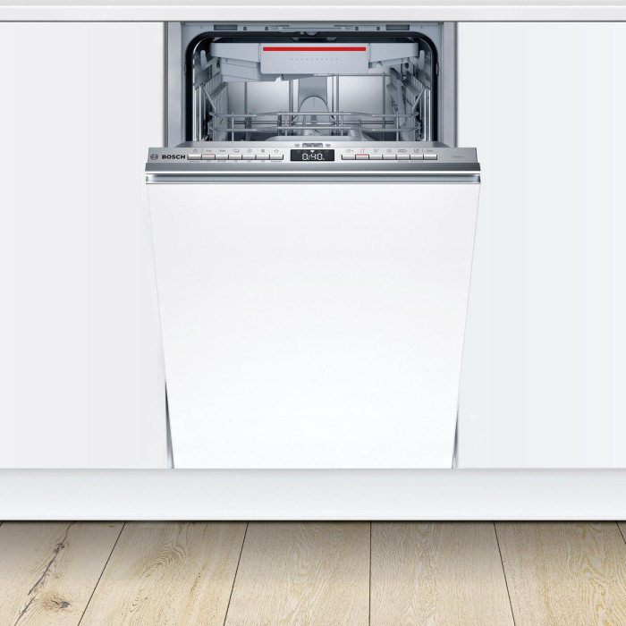Посудомоечная машина BOSCH SPV4XMX20E — это встраиваемая модель шириной 45 см. Система защиты AquaStop сработает в случае неожиданной протечки и автоматически перекроет подачу воды. InfoLight или «Луч на полу» — это технология, которая проецирует на пол световое пятно, чтобы вы всегда были в курсе, на какой стадии работы находится прибор. Мотор EcoSilenceDrive, благодаря своей конструктивной особенности в виде отсутствия щёток, потребляет меньше электроэнергии, более долговечен и при этом издаёт меньше шума.