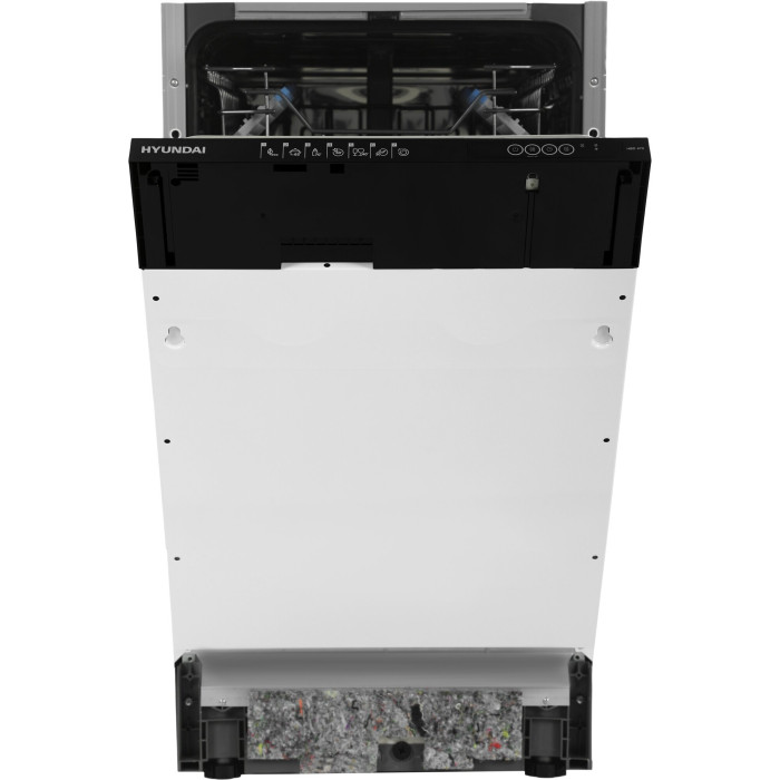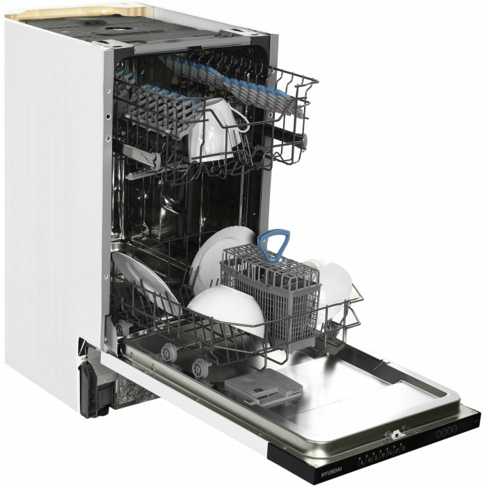 Посудомоечная машина Hyundai HBD 473 не оставит от грязи на посуде и следа. Прибор обладает высоким классом использования энергии А++, при этом он обладает мощностью 1900 Вт, но издаёт минимальное количество шума – в районе 49 дБ. В устройстве предусмотрено 7 программ, в том числе для экономии воды, для быстрой помывки, для деликатных материалов, для интенсивной обработки и даже режим предварительного ополаскивания (замачивания). Время, которое занимает обычный цикл, составляет около 222 минут. В конце данная модель издаёт громкий звуковой сигнал. В 2 корзины (с регулировкой высоты), установленные в Hyundai HBD 473, помещается до 10 комплектов посуды, однако для помывки наполовину заполненного объёма есть соответствующая программа. Для повышения эффективности мытья в устройстве можно использовать средства «3 в 1» - этот аспект заложен в его характеристики. Также внутри Hyundai HBD 473 есть индикаторы, показывающие наличие ополаскивателя и соли. Режим работы девайса настраивается посредством специальной панели, установленной в нём. От протечек посудомоечная машинка надежно защищена сертифицированной системой AquaStop. Она не позволяет воде оказываться в не предназначенных для неё местах и помогает избежать множества проблем. Таймер старта у Hyundai HBD 473 можно отсрочить на период до 19 часов.