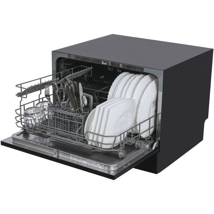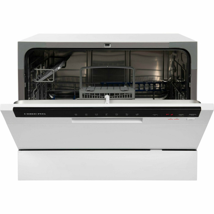 Отдельностоящая компактная посудомоечная машина HIBERG T56 615 с возможностью встраивания – оптимальный вариант для небольшой семьи, она сэкономит ваше время и обеспечит идеальную чистоту с минимальным потреблением воды и электроэнергии. Кроме того, машина занимает мало места, и ее можно установить на стол.