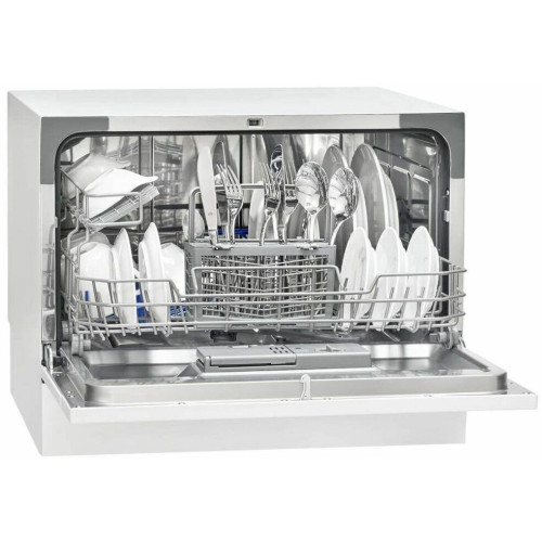 Компактная 5 программ, 6 комплектов 1 уровень распыления Температура мойки 40°C — 70°C Общая информация Компактная посудомоечная машина 6 комплектов посуды Светодиодные индикаторы Отсрочка старта 2 / 4 / 6 / 8 ч Индикатор нехватки ополаскивателя Температура мойки 40°C- 70°C 1 уровень распыления Скрытый нагревательный элемент Устройство дозирования ополаскивателя Защита от перелива Внутренняя дверь из нержавеющей стали Серебристо-серая корзина для посуды Корзина для столовых приборов Держатель для чашек 5 Программ: Интенсивная Универсальная ЭКО 90 минут Предварительная Спецификация Питание: 220-240 В~ / 50 Гц / 1170–1380 Вт Номинальный ток: 10А Уровень шума: 49 дБ Потребление воды/энергии за рабочий цикл: 6,5 л / 0,61 кВтч Потребление энергии на 100 рабочих циклов: 61 кВтч (согласно техпаспорту ЕС согласно Регламенту № 2019/2017) Габариты: Устройство: 43,8 х 55,0 х 50,0 см (ВхШхГ) Упаковка: 52,0 x 61,0 x 56,5 см (ВxШxТ) Вес нетто: 20,0 кг Вес брутто: 23,0 кг