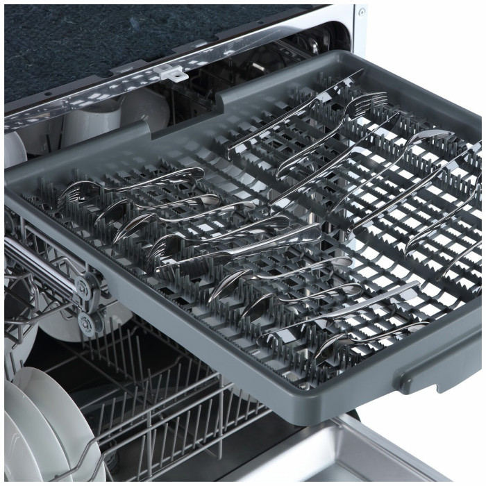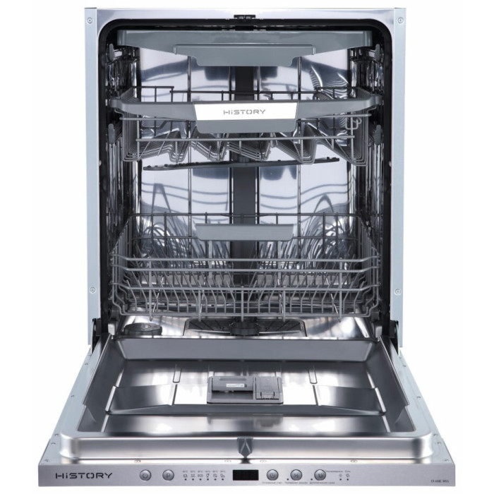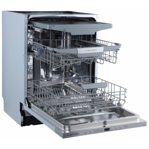Встраиваемые посудомоечные машины HiSTORY - это надежные и безопасные устройства высокой эффективности. Модель HiSTORY DI66BC MSS вмещает до 14 комплектов посуды. В верхней части находится компактный выдвижной поддон для столовых приборов. Для комфортного размещения габаритных предметов посуды можно отрегулировать по высоте среднюю корзину. Выберите подходящую программу из 6 режимов, установите при необходимости отсрочку старта (1 24ч), и ваша посуда всегда будет чистой. Луч на полу подскажет, когда цикл работы будет окончен.
