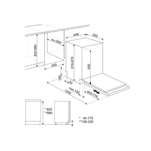 Тип: встраиваемая посудомоечная машинаУстановка: встраиваемая полностью интегрированнаяВместимость: 9 комплектовАквастоп: естьБыстрая мойка: естьДеликатная мойка: нетЗащита от протечек: естьИндикация хода программ: естьИнтенсивная мойка: естьКласс энергопотребления: FКоличество программ: 5Напряжение: 220-240 ВПоловинная загрузка: нетПотребление воды: 9,9 л/циклПредварительное ополаскивание: естьСигнал завершения работы: естьУровень шума: 49 дБШирина: 45 смВысота: 88 смГлубина: 55 смЦвет: черныйОтделка: черный глянцевыйЦвет фронтальной панели: черный