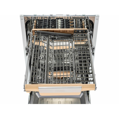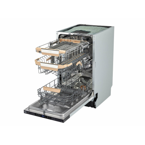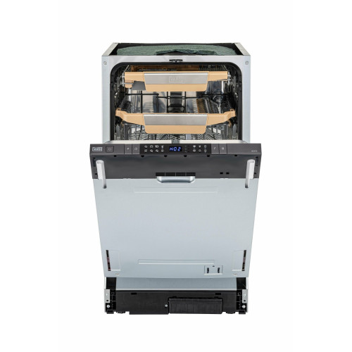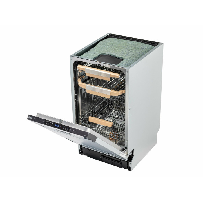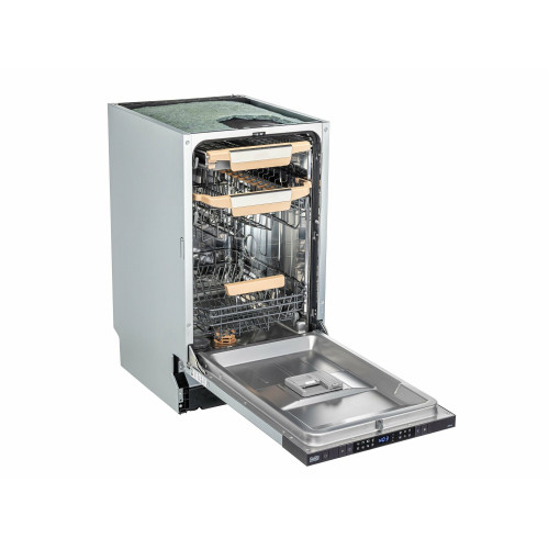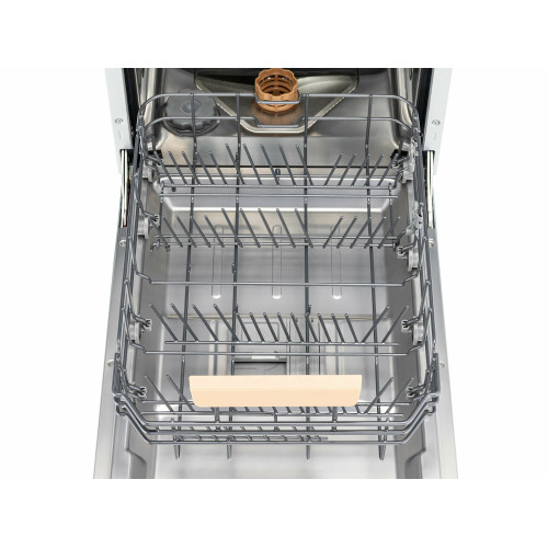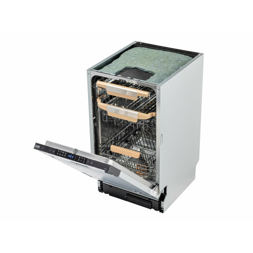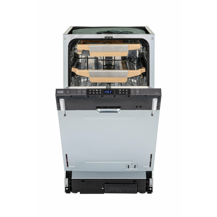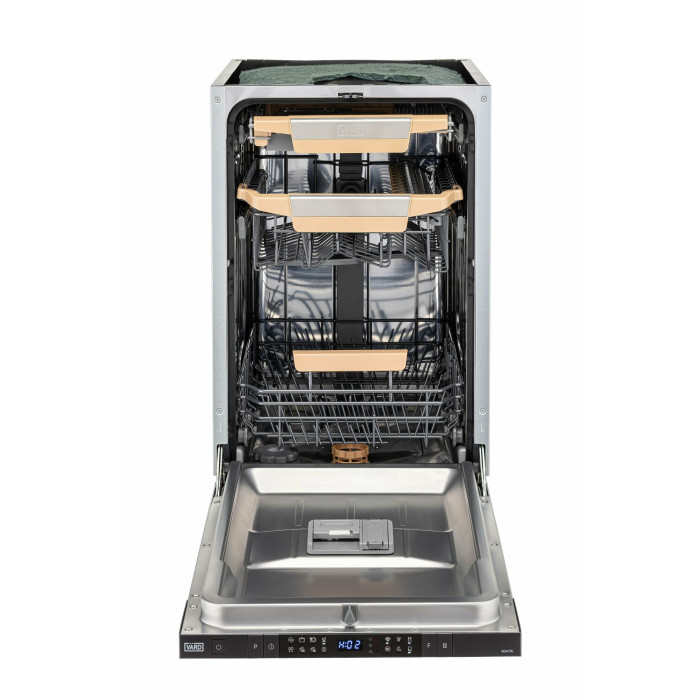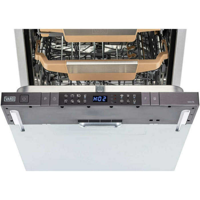 Узкая посудомоечная машина Vard VDI413L встраиваемая, 45 см. Узкая посудомоечная машина обладает стильным лаконичным дизайном, защитой от протечек и антибактериальным фильтром. Автооткрывание. Функция автооткрывания облегчает процесс сушки. В завершение программы машина обдаёт моющиеся предметы горячей водой и открывает дверцу. Из-за перепада температур на посуде образуется конденсат, который быстро стекает, а посуда становится сухой естественным путём. SpaceMax. В корзине для столовых приборов SpaceMax можно разместить больше посуды. Она отлично подходит для мытья небольших кофейных чашек. Кроме того, SpaceMax можно сложить, освобождая место во второй корзине для мойки широких тарелок и высоких стаканов. Регулируемая по высоте корзина. Регулируемая по высоте корзина позволяет комфортно разместить посуду. Её можно поднять, чтобы положить в нижнюю корзину тарелки большого диаметра, или, наоборот, опустить, чтобы поставить высокие стаканы или бокалы. Силиконовые держатели для бокалов. Защитные держатели из мягкого, но прочного силикона позволяют зафиксировать бокалы в корзине, предотвращая их повреждение в процессе мойки. Zone Wash. Меньше посуды — быстрее мойка. Если вам необходимо помыть небольшое количество посуды, выберите программу зональной мойки и разместите посуду в верхней или нижней корзине для экономичного расхода воды и электроэнергии. Инверторный мотор. В моторе используется инвертор (частотный преобразователь), позволяющий с высокой точностью регулировать скорость и контролировать необходимую оборотную частоту. Отсутствие коллектора с щётками позволяет этим двигателям отличаться тихой работой, повышенной надёжностью и меньшим энергопотреблением. Луч на полу. Луч на полу показывает, что посудомоечная машина работает, а цикл пока не завершён. С ним вы можете быть уверены: она включилась и начала мойку. Внутренняя подсветка. Загрузка и разгрузка посудомоечной машины становятся намного проще благодаря встроенной LED-подсветке. Она автоматически включается при открытии дверцы и освещает внутреннее пространство ярким, но мягким светом. Светодиодные лампы долговечны и могут работать в течение всего срока службы. Автопрограмма. Автопрограмма использует датчики мутности воды для определения длительности мойки и температуры воды. Например, если требуется более длительный цикл для лучшего результата и чистоты бокалов, автопрограмма увеличивает время мойки, пока используемая вода не будет прозрачной. Когда бокалы, наоборот, чистые, машина сама сократит цикл.
