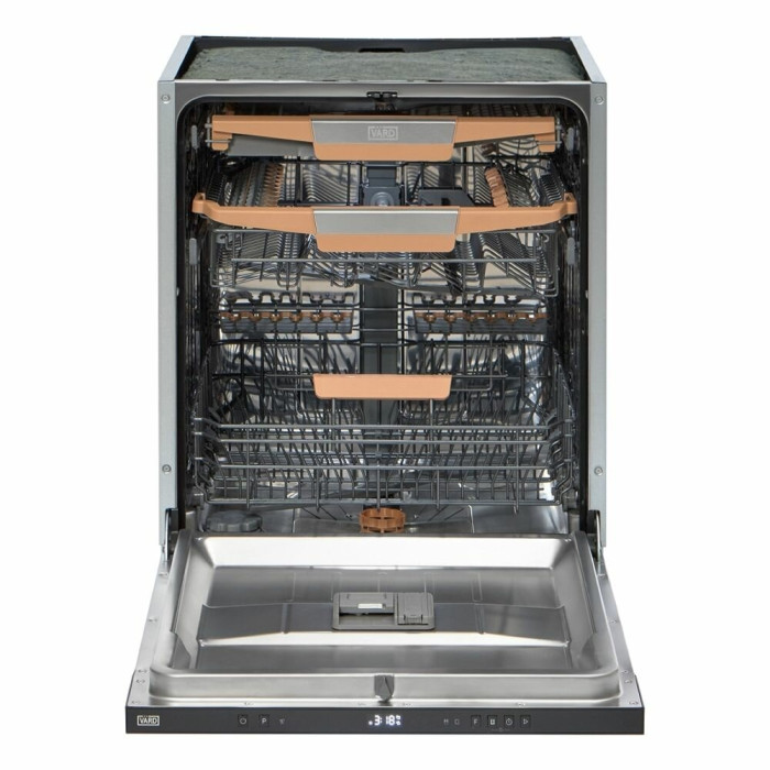 Встраиваемая посудомоечная машина VARD VDI651C — модель, рассчитанная на загрузку 15 комплектов посуды. Функция автооткрывания облегчает процесс сушки. В завершение программы машина обдаёт моющиеся предметы горячей водой и открывает дверцу. Из-за перепада температур на посуде образуется конденсат, который быстро стекает, а посуда становится сухой естественным путём. В корзине для столовых приборов SpaceMax можно разместить больше посуды. Она отлично подходит для мытья небольших кофейных чашек. Кроме того, SpaceMax можно трансформировать, освобождая место для загрузки половников и лопаток. Регулируемая по высоте корзина позволяет комфортно разместить посуду. Её можно поднять, чтобы положить в нижнюю корзину тарелки большого диаметра, или, наоборот, опустить, чтобы поставить высокие стаканы или бокалы. Защитные держатели из мягкого, но прочного силикона позволяют зафиксировать бокалы в корзине, предотвращая их повреждение в процессе мойки. Меньше посуды — быстрее мойка. Если вам необходимо помыть небольшое количество посуды, выберите программу зональной мойки и разместите посуду в верхней или нижней корзине для экономичного расхода воды и электроэнергии. Луч на полу показывает, что посудомоечная машина работает, а цикл пока не завершён. С ним вы можете быть уверены: она включилась и начала мойку. Автопрограмма использует датчики мутности воды для определения длительности мойки и температуры воды. Например, если требуется более длительный цикл для лучшего результата и чистоты бокалов, автопрограмма увеличивает время мойки, пока используемая вода не будет прозрачной. Когда бокалы, наоборот, чистые, машина сама сократит цикл. Мойка и дополнительный цикл полоскания на этой программе происходит на температуре 70 градусов, что создает эффект стерилизации. Программа оптимально подходит для мойки бутылочек и детской посуды. Дополнительные направленные разбрызгиватели в средней корзине в совокупности со специальными держателями улучшают качество мытья посуды с узким горлышком, например, детских бутылочек или высоких стаканов. Особенности устройства: Тип: DB60 Тип вилки: европейская Количество комплектов: 15 Количество корзин: 3 Увеличенная третья корзина Space Max Количество функций: 2 Количество программ: 7 Регулировка корзины по высоте Держатели для бокалов Отсрочка старта: 1-24 часа Антибактериальный фильтр Авто программа: 1 Ежедневная мойка: 90 мин Усиленная мойка Интенсивная сушка Ускоренная мойка Половинная загрузка