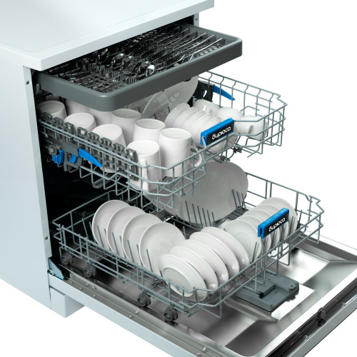 Тип: полноразмерная; Тип сушки: турбосушка; Вместимость: 15 комплектов; Тип управления: электронное; Инверторный двигатель: нет; Количество программ мойки: 8; Программы: Замачивание, комбинированная, гигиена, ЭКО, быстрая, стекло, интенсивная, самоочистка; Количество температурных режимов: 6;