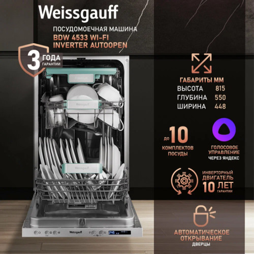 Посудомоечная машина Weissgauff BDW 4533 Wi-Fi Inverter Autoopen