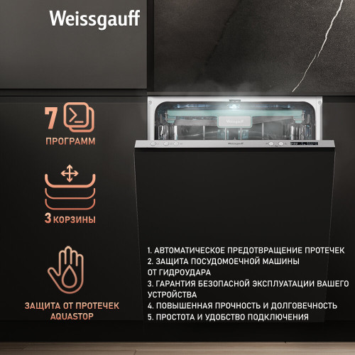 Встраиваемая посудомоечная машина Weissgauff BDW 6033 Wi-Fi Inverter Autoopen