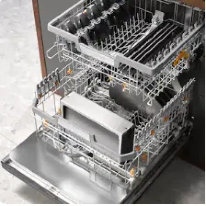 автоматическое открывание дверцы по завершении цикла, внутренняя поверхность из нержавеющей стали, дисплей, использование средств 3 в 1, сенсор чистоты воды