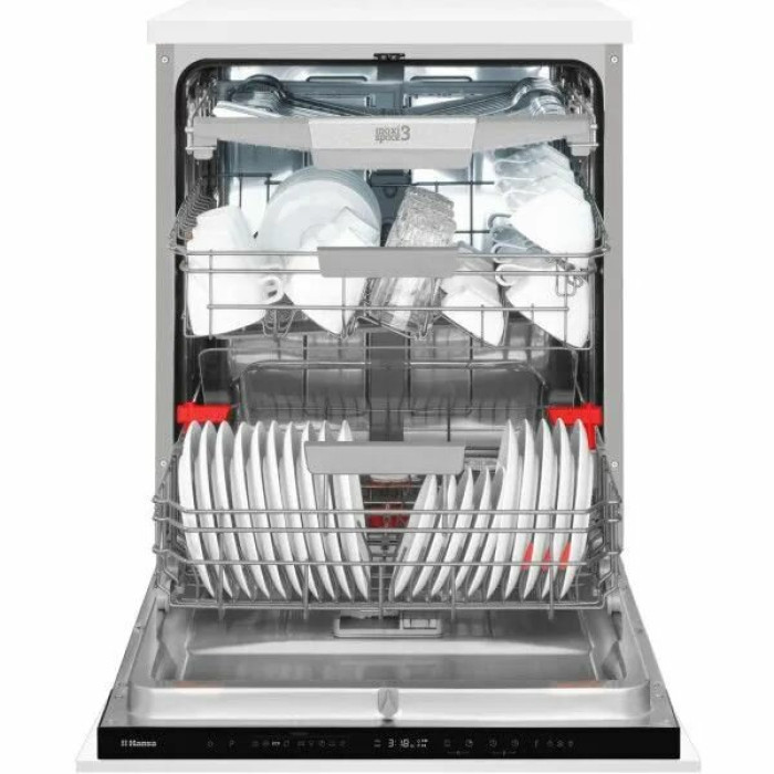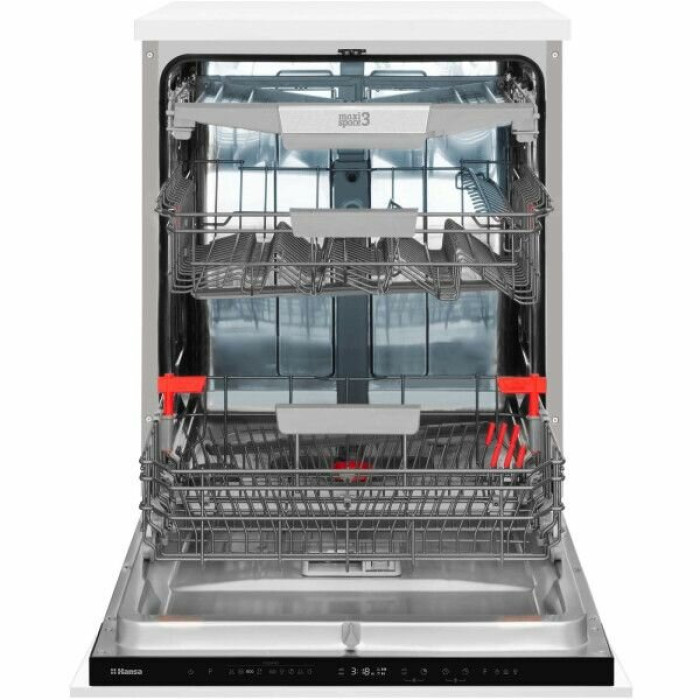 автоматическая установка жесткости воды, автоматическое открывание дверцы по завершении цикла, внутренняя поверхность из нержавеющей стали, подсветка камеры, регулируемая по высоте корзина для посуды, сенсор чистоты воды