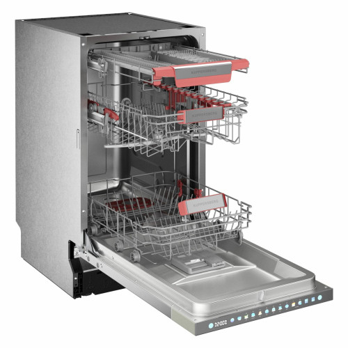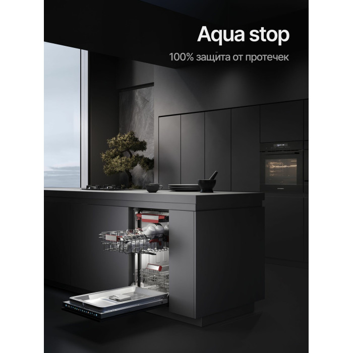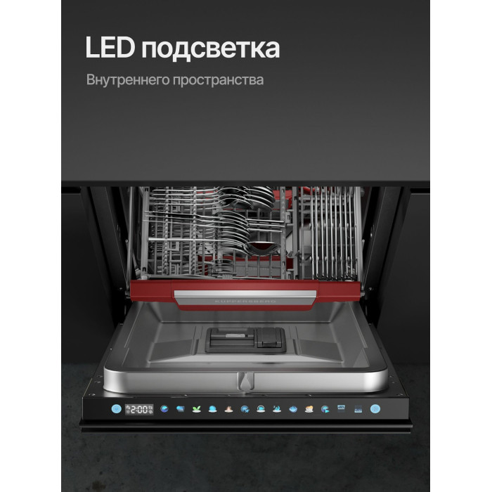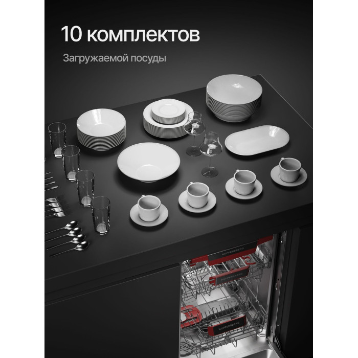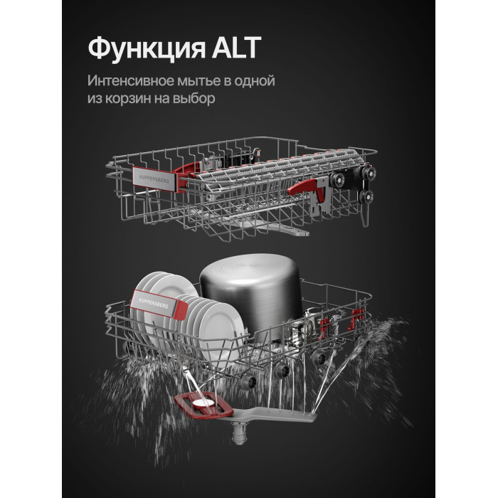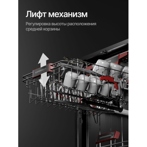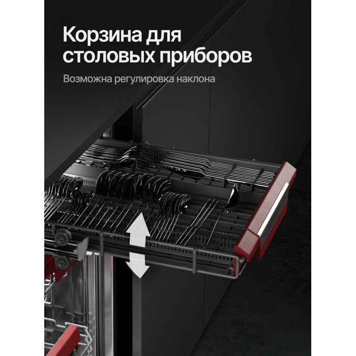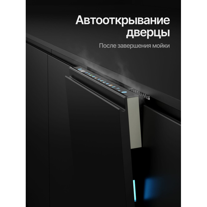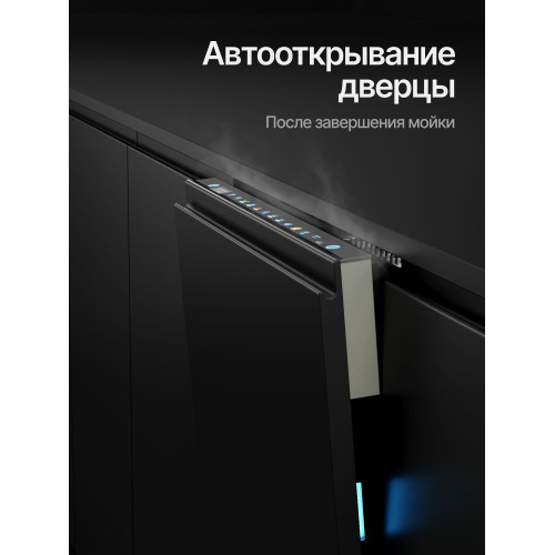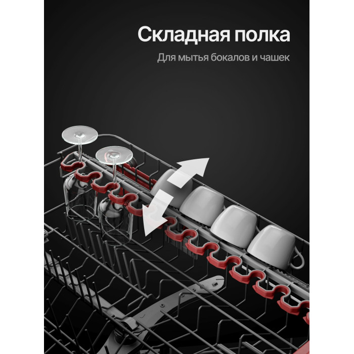 Автоматическое открывание двери, Отсрочка запуска, Полка для чашек, Половинная загрузка, Съемные контейнеры для столовых приборов, Съемные насадки разбрызгивателей