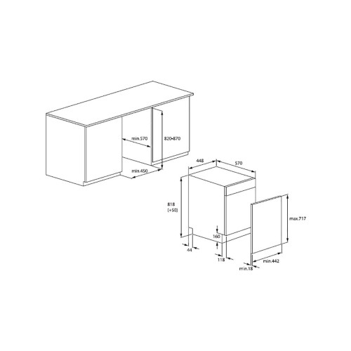 81.8 см; Ширина ниши для встраивания: 44.8 см; Глубина ниши для встраивания: 55 см; Количество корзин: 3; Время мойки при мини-программе: 30 мин.; Минимальная температура воды: 35°C; Максимальная температура водны: 70°C