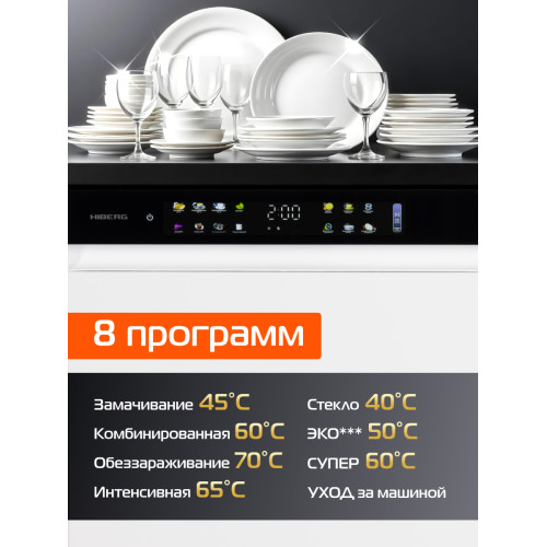 быстрая, интенсивная, предварительное ополаскивание/замачивание, программа самоочистки, режим половинной загрузки, стекло, ускоренная, экономичная