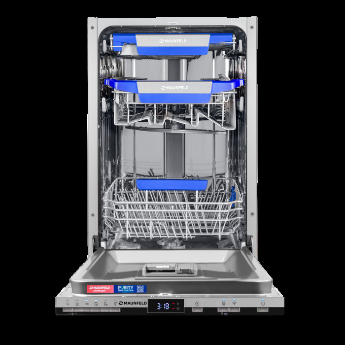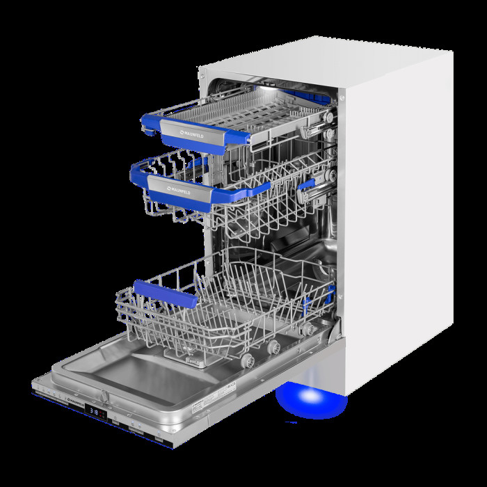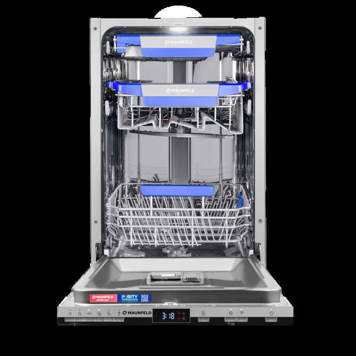 автоматическое открывание дверцы по завершении цикла, использование средств 3 в 1, подсветка камеры, регулируемая по высоте корзина для посуды