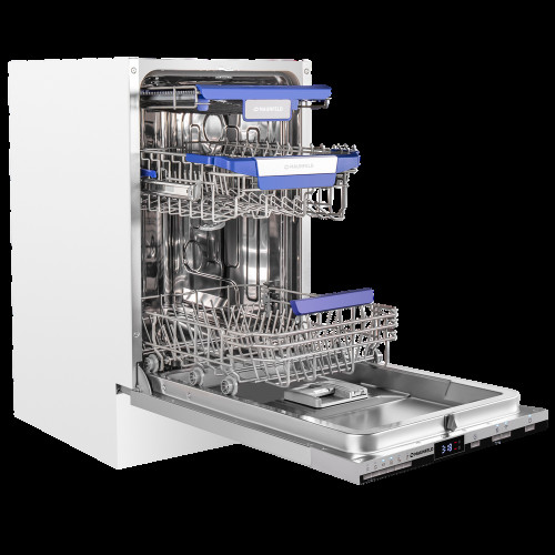 автоматическое открывание дверцы по завершении цикла, использование средств 3 в 1, подсветка камеры, регулируемая по высоте корзина для посуды
