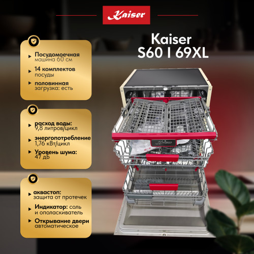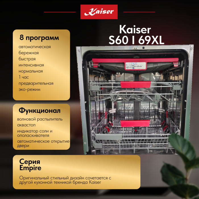 Автоматическое открывание двери, Звуковой сигнал, Поддон для столовых приборов, Полка для чашек, Половинная загрузка, Съемные контейнеры для столовых приборов, Таймер