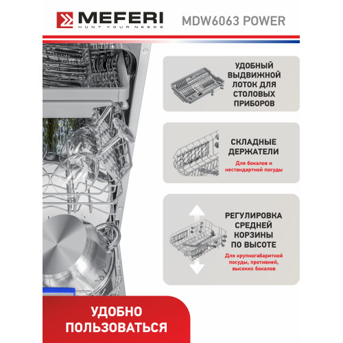 внутренняя поверхность из нержавеющей стали, дисплей, использование средств 3 в 1, регулируемая по высоте корзина для посуды, таймер отсрочки